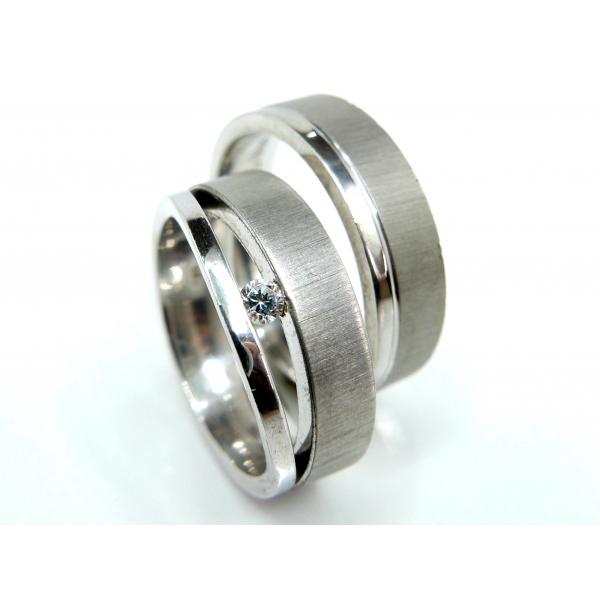 Snubní prsteny vyrobené z bílého zlata, prsteny zdobené matováním, dámský prsten se zirkony/brilianty. Cena s moissanity 41500,-