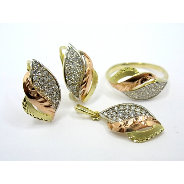 Zlaté náušnice posázené zirkony a v kombinaci barev, v ceně 5220,-, přívěšek 2470,- , prsten vel 56 - 4180,-