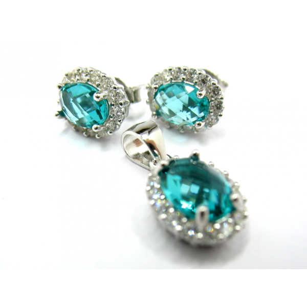 Stříbrná souprava, náušnice s přívěškem ze stříbra, zdobené zirkony