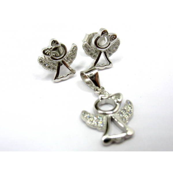 Stříbrná souprava, náušnice s přívěškem , zdobené zirkony