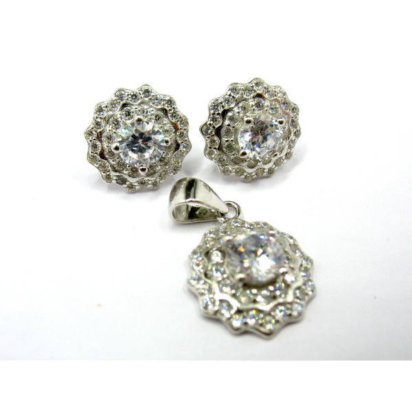 Stříbrná souprava , náušnice s přívěškem , zdobené zirkony