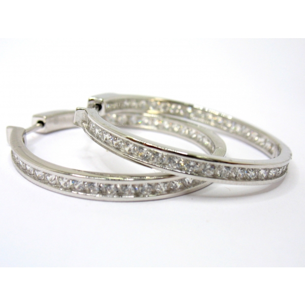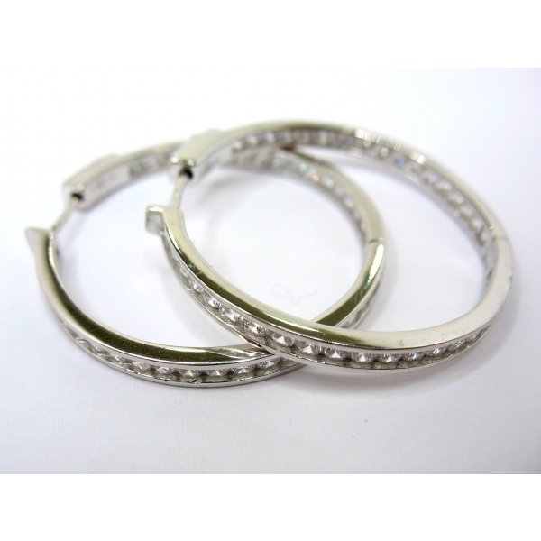 Náušnice kruhy vyrobené ze stříbra posázené zirkony, pojistka u zapínání