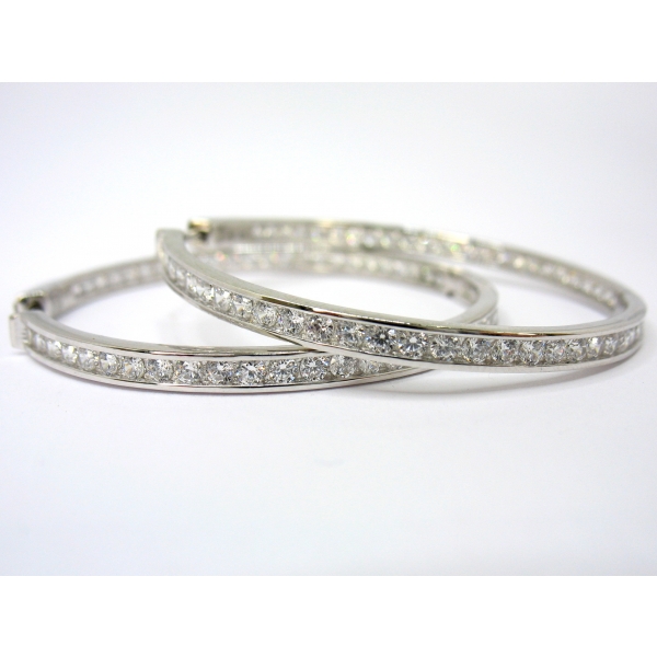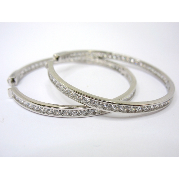 Náušnice kruhy vyrobené ze stříbra posázené zirkony, pojistka u zapínání