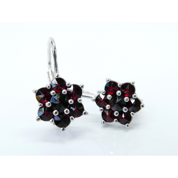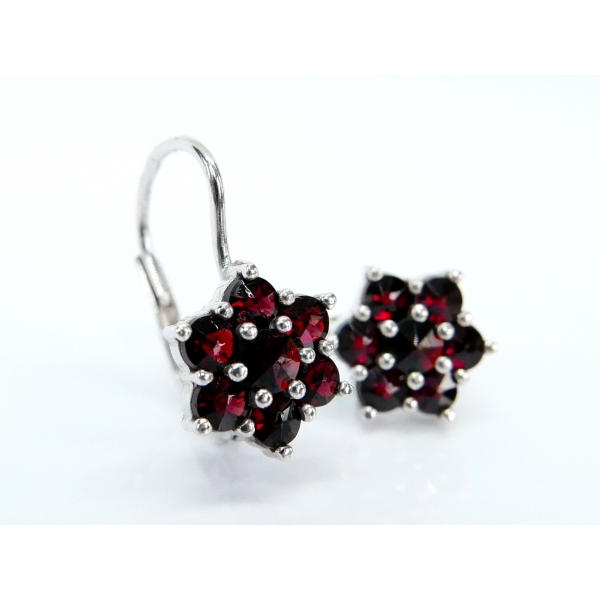 Náušnice vyrobené ze stříbra zdobené českými granáty