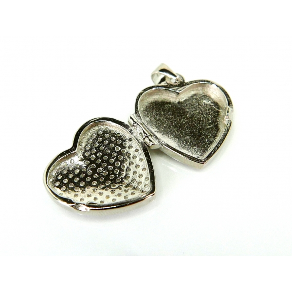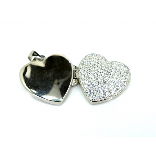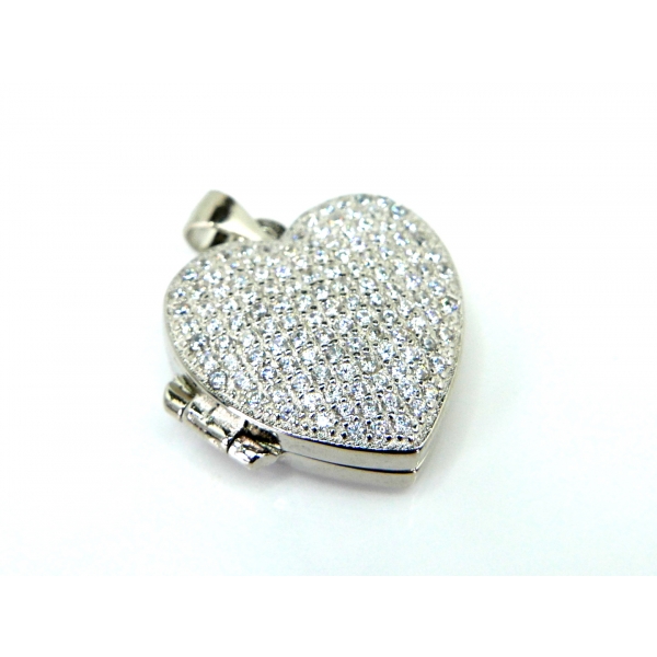 Přívěšek medilon vyrobený ze stříbra zdobený zirkony. Do přívěšku lze vložit fotografie a ze zadní strany je vhodný k rytí