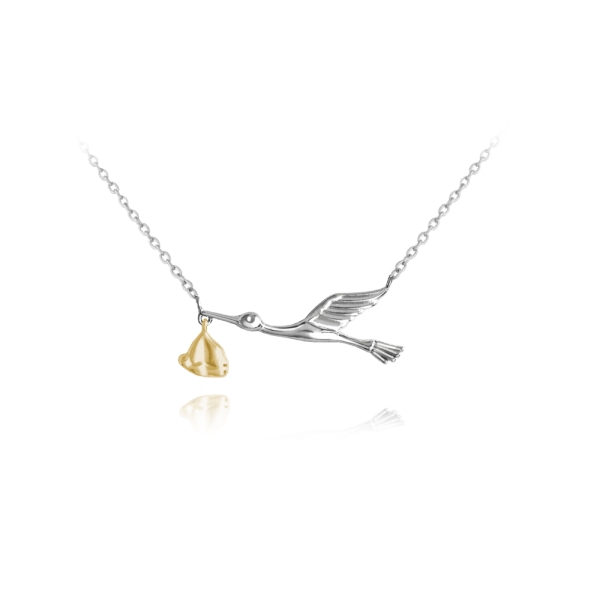 Řetízek s přívěškem čáp s miminkem vyrobený ze stříbra