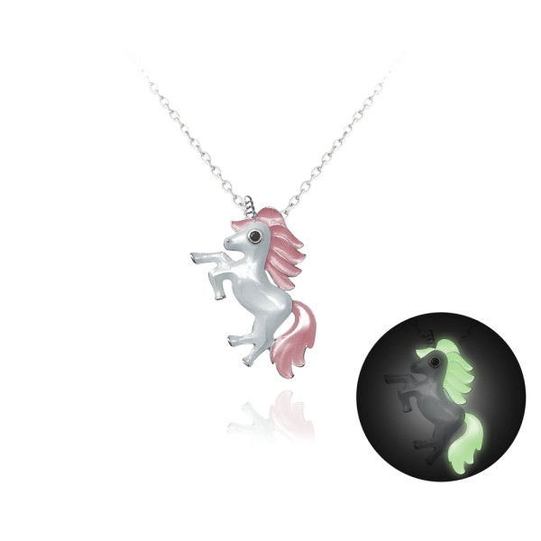 Řetízek s přívěškem jednorožce ze stříbra je to pravé pro vaši malou parádnici,...ve tmě svítí, lze dokoupit i náušnice s jednorožcem