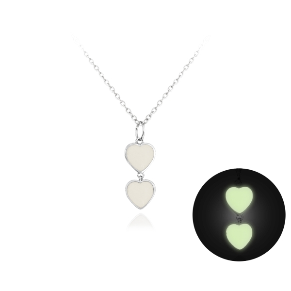 Řetízek s přívěškem srdíček vyrobený ze stříbra ...svítí ve tmě