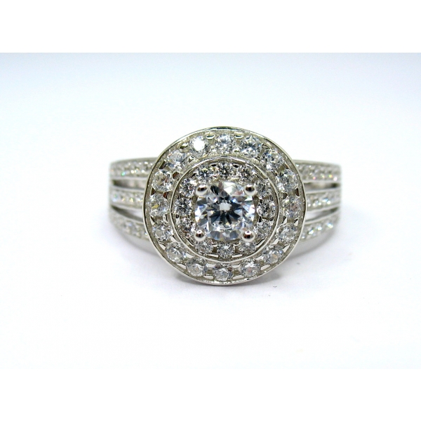 Zásnubní prsten vyrobený ze stříbra posázený zirkony
