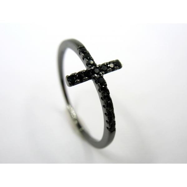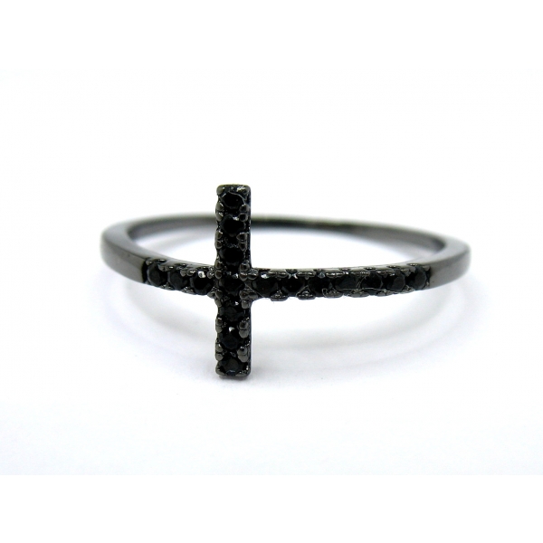 Prsten vyrobený ze stříbra posázený černými zirkony