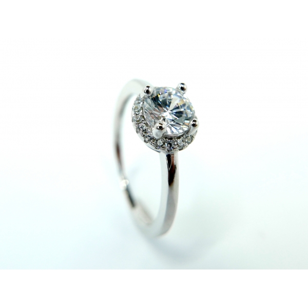 Zásnubní prsten vyrobený ze stříbra posázený zirkony