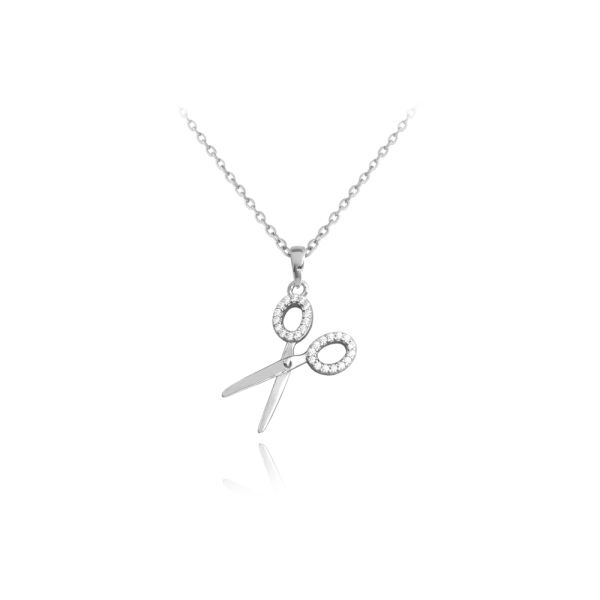 Řetízek vyrobený ze stříbra zdobený přívěškem nůžky se zirkony