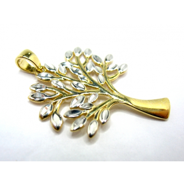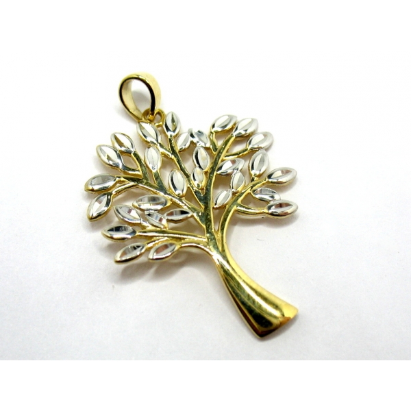 Přívěšek strom života vyrobený ze 14 k zlata , zdobený bílým zlatem