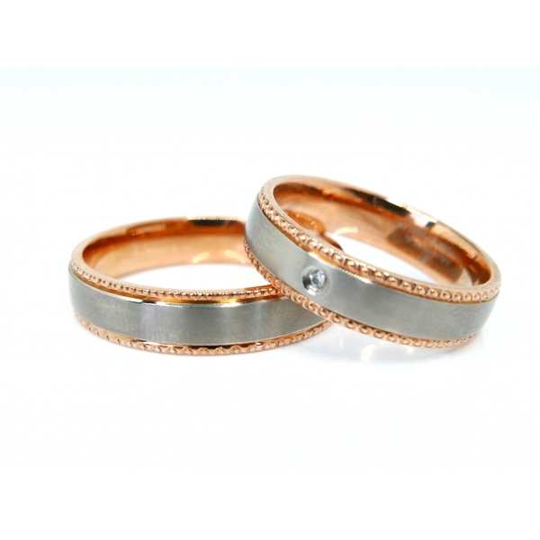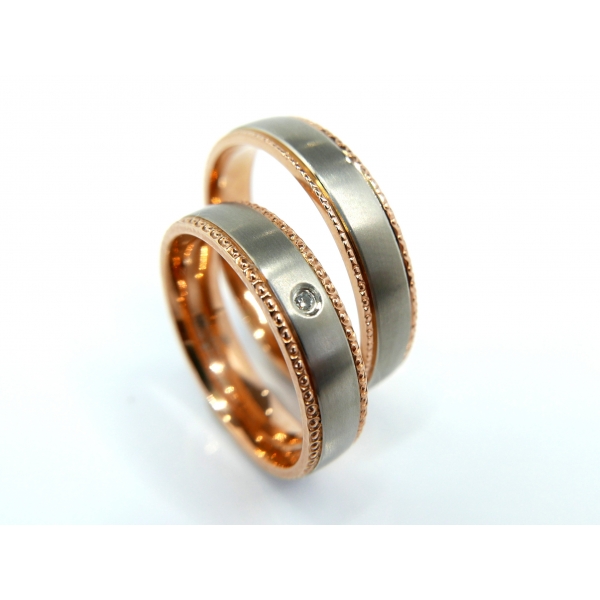 Snubní prsteny vyrobené z titanu zlacené 14kt zlatem , dámský prsten zdobený briliantem