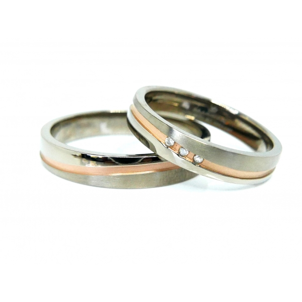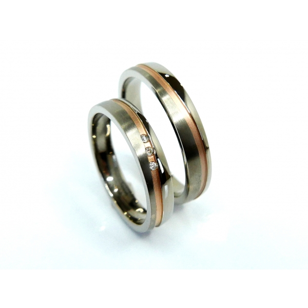 Snubní prsteny vyrobené z titanu zlacené 14kt zlatem , dámský prsten zdobený brilianty