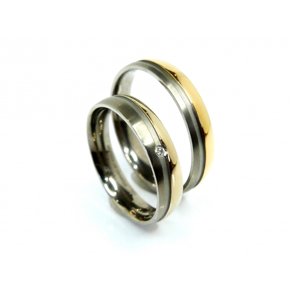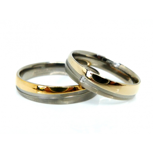 Snubní prsteny vyrobené z titanu zlacené 14kt zlatem , dámský prsten zdobený briliantem
