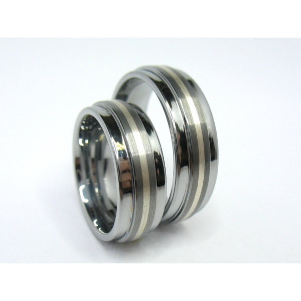 Wolframové snubní prsteny v kombinaci se Stříbrem. Vzor: 20003
