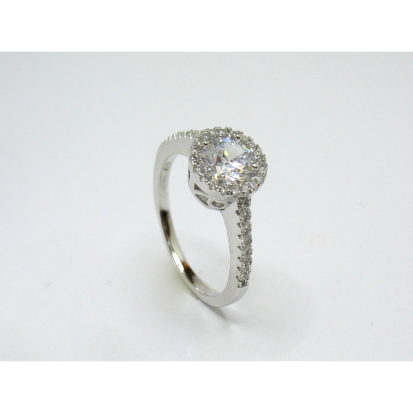Rhodiovaný prstýnek zdobený bílými kamínky-zirkony.