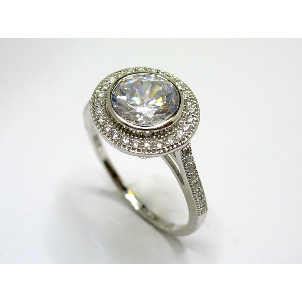Rhodiovaný prstýnek zdobený bílými kamínky-zirkony.