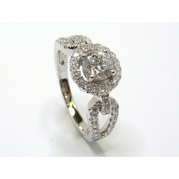 Rhodiovaný prstýnek zdobený bílými kamínky-zirkony.