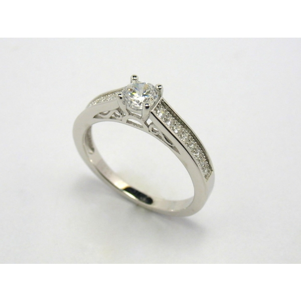 Rhodiovaný prstýnek zdobený bílými kamínky-zirkony.