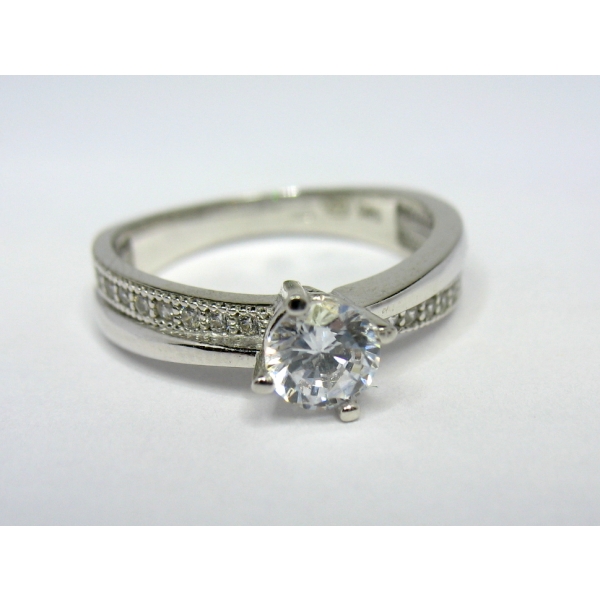 Zásnubní prsten se zirkony v bílém zlatě.