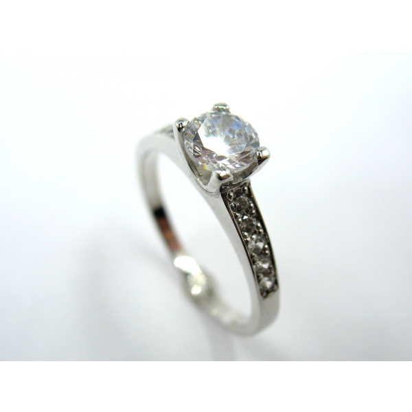 Zásnubní prsten z bílého zlata posázený zirkony, vel 50. Lze objednat i v jiných velikostech