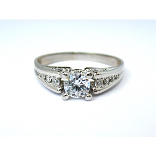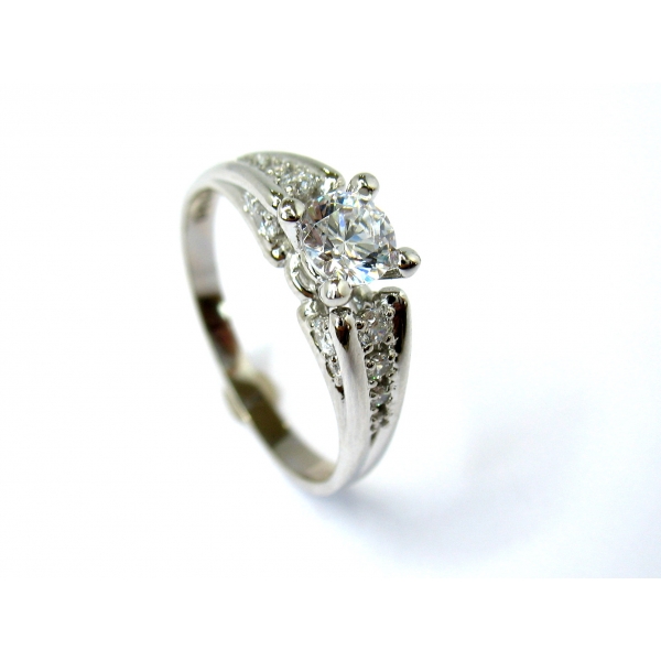 Zásnubní prsten z bílého zlata se zirkony. Můžete si objednat libovolnou velikost i odstín zlata.K dodání i v luxusní verzi v briliantech.