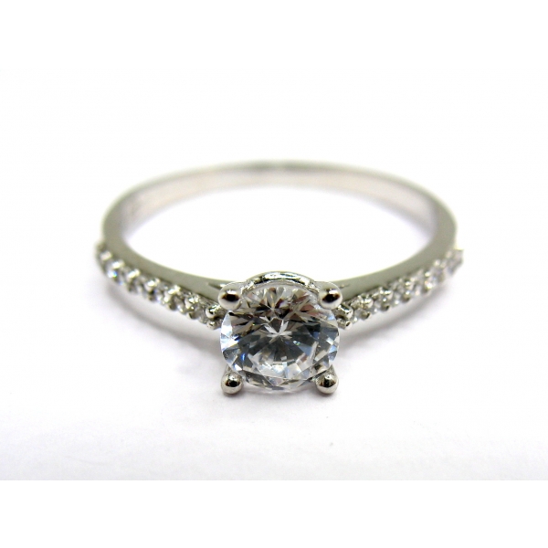 Zásnubní prsten z bílého 14kt zlata se zirkony, vel 55