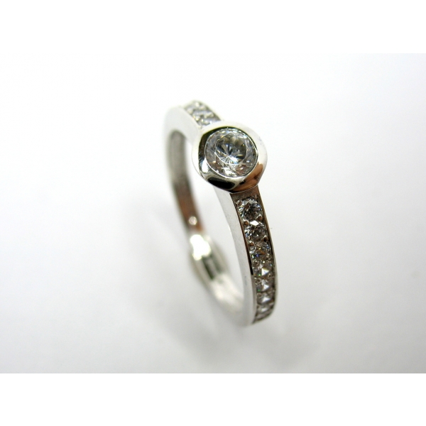 Zásnubní prsten z bílého zlata , posázený zirkony. Velmi elegantní a příjemný na nošení. Lze objednat v různých velikostech.