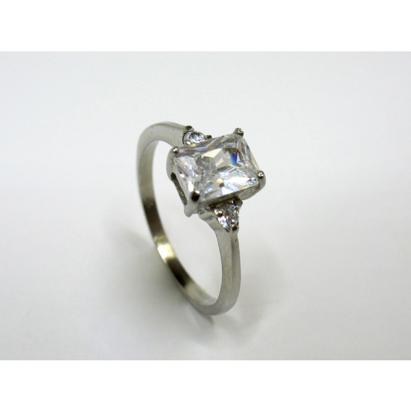 Zásnubní prsten z chirurgické oceli se zirkonem.