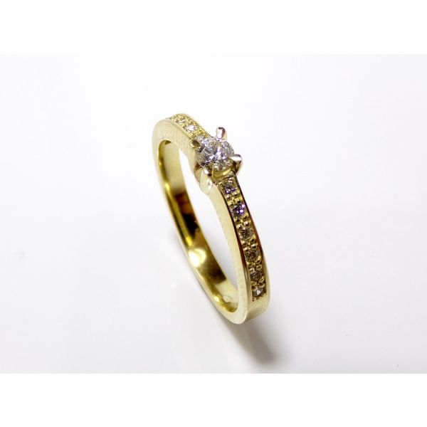 Zásnubní prsten vyrobený ze 14kt zlata posázený brilianty