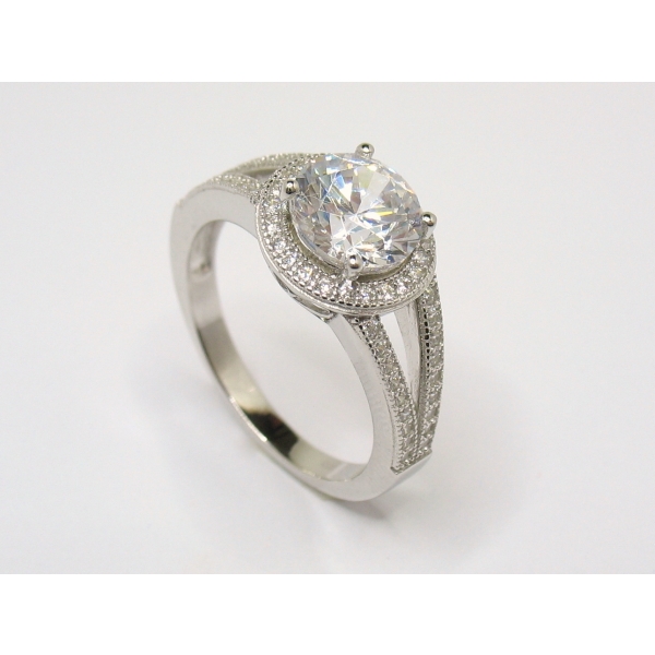 Rhodiovaný prstýnek zdobený bílými kamínky-zirkony.