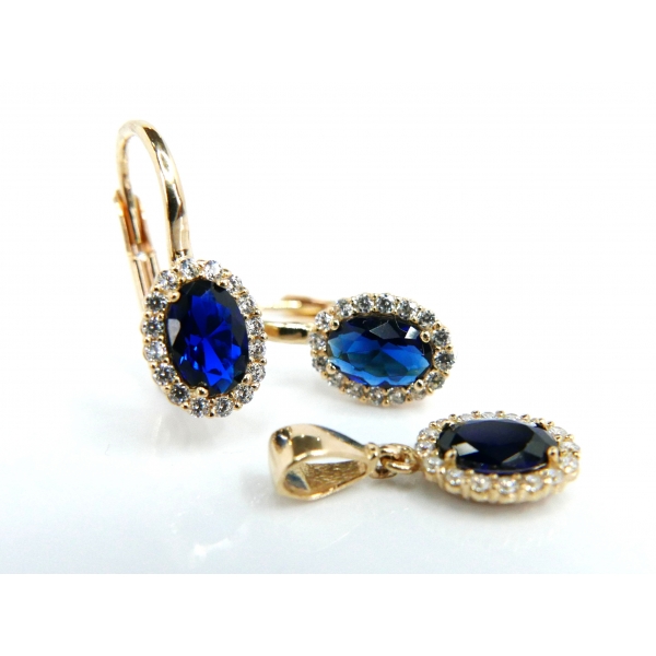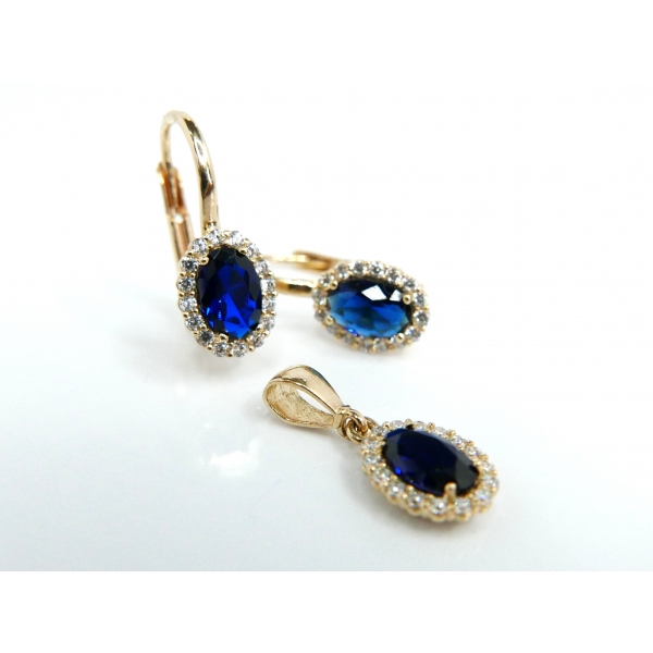 Souprava vyrobená ze 14kt zlata zdobená zirkony . Náušnice v ceně 4180,- přívěšek 1320,-