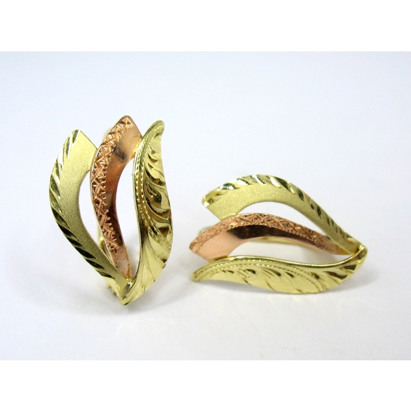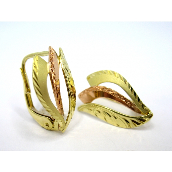 Náušnice vyrobené ze 14k zlata , zdobené červeným zlatem