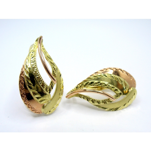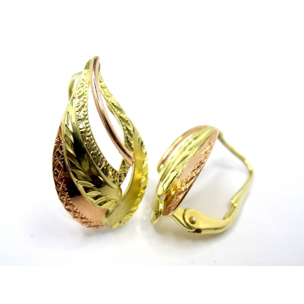 Náušnice vyrobené ze 14k zlata , zdobené červeným zlatem