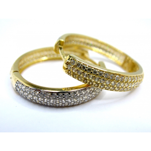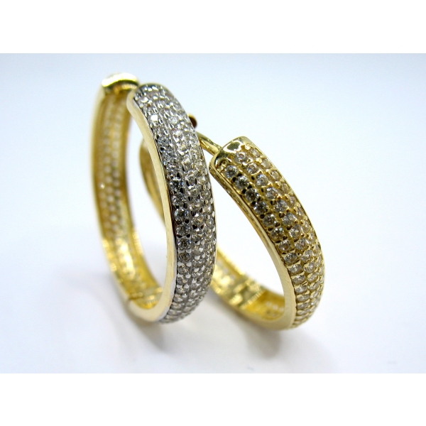 Náušnice vyrobené ze 14kt zlata se zirkony. Luxusní dvojbarevné provedení náušnic, kdy z jedné strany jsou bílé a z druhé strany žluté