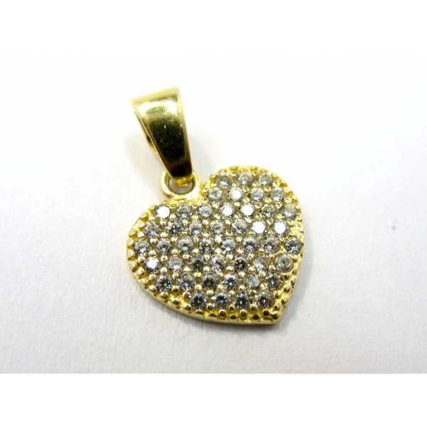 Přívěšek ve tvaru srdce, posázený zirkony a vyroben ze 14k zlata