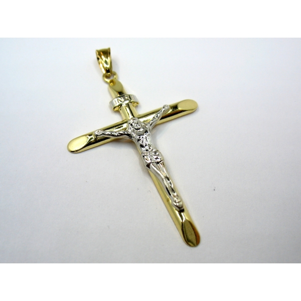 Křížek vyrobený ze 14k zlata s bílým zdobením
