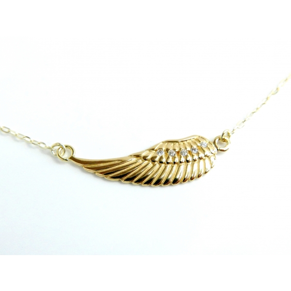 Náhrdelníček s andělským křídlem vyrobený ze 14kt zlata posázený zirkony