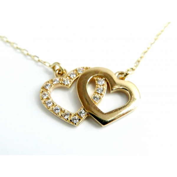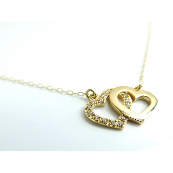 Náhrdelníček se srdíčky vyrobený ze 14kt zlata posázený zirkony