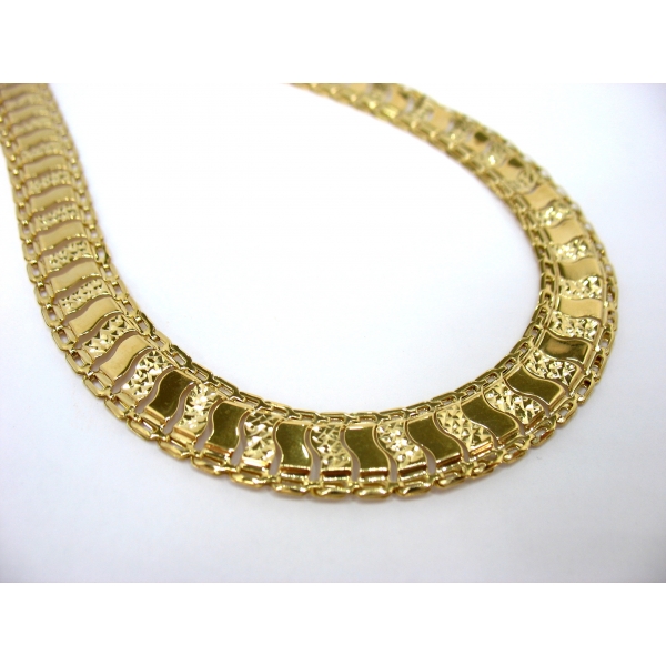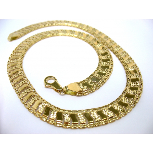 Náhrdelník vyrobený ze 14kt zlata v délce 45cm, luxusní provedení , dílky zdobené rytím