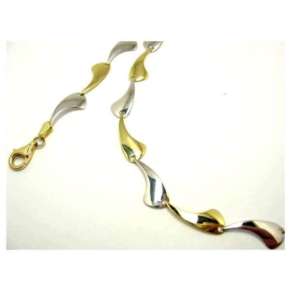 Zajímavě řešený náramek v bílo žluté kombinaci v délce 19 cm.