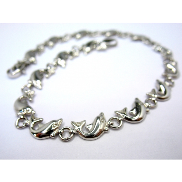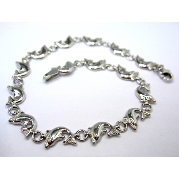 Krásný a propracovaný náramek s delfíny vyrobený ze 14k bílého zlata , délka 19cm
