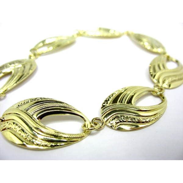 Náramek vyrobený ze 14 k zlata zdobený ručním rytím v délce 18 cm. Náramek v délce 21 cm 21680,-