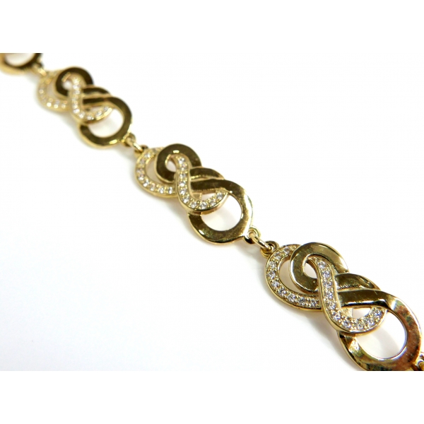 Masivní náramek , kvalitní a pevné zpracování, vyrobený ze 14kt zlata zdobený zirkony v délce 18cm