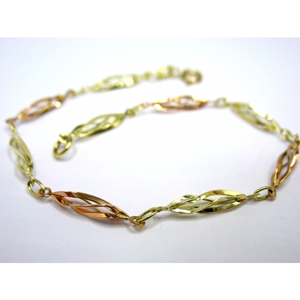 Náramek vyrobený ze 14kt zlata , kombinovaný s červeným zlatem v délce 18cm