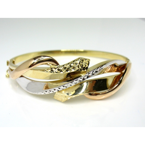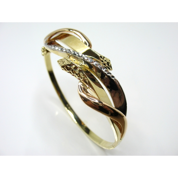 Náramek vyrobený ze 14kt zlata zdobený červeným a bílým zlatem