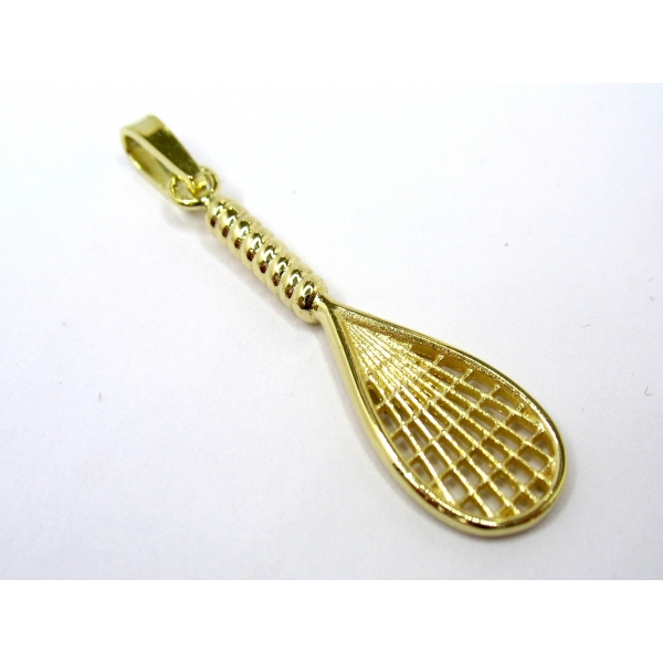 Přívěšek vyrobený ze 14k zlata ve tvaru rakety na squash