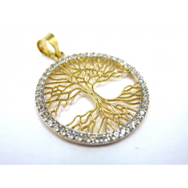 Přívěšek strom života vyrobený ze 14 k zlata se zirkony
